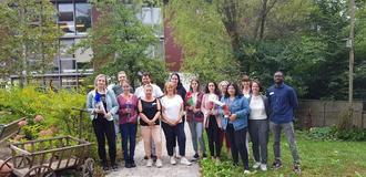Unsere acht neuen Azubis und sechs Praxisanleiter/innen der Hospitalstiftung Dinkelscherben im Garten des Seniorenzentrums Zusmarshausen.