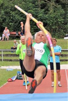 17. September: Dieser Tag war nicht gerade einladend, um deutsche Meisterschaften in der Leichtathletik auszutragen: Unsere Senioren-Wettkämpfer Jürgen Hinterstößer und Alfred Just, beide M60, fuhren trotz Kälteeinbruch und Regen nach Erding. Beide hatten Probleme mit dem miesen Wetter: So blieb Jürgen Hinterstößer mit 2,60 m im Stabhochsprung 30 cm unter seiner Jahresbestleistung. In der Meisterschaft belegte er aber den respektablen Platz 8.