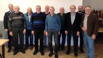 Von links: Vorstand Thomas Link, Michael Hauser, Gerhard Birle, Gabriel Mayer, Josef Birle, Michael Lachennmayr, Pius Wiedemann, Leonhard Albrecht, Kommandant Johann Gumpinger, Bürgermeister Edgar Kalb