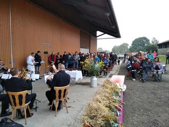 Die Landvolkbewegung Dinkelscherben lud am Bruder-Klaus-Tag zu einem Dankgottesdienst für die Landwirtschaft ein. Heribert Singer, Pfarrer i. R. zelebrierte auf dem Bauernhof der Familie Rapp in Wollishausen die Messe. Der weitläufige Hof bot eine herrliche Kulisse für die vielen Gäste aus nah und fern. Musikalisch umrahmte die Bläsergruppe aus Dinkelscherben die Messe mit neuem geistlichem Liedgut.