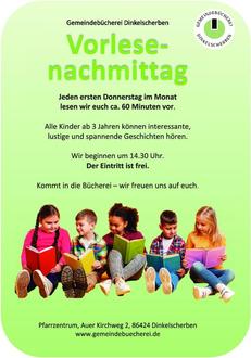Ab April wird jeden ersten Donnerstag im Monat von 14.30 bis 15.30 Uhr wieder eine Vorlesezeit für unsere jüngsten Leser und Leserinnen ab 3 Jahren angeboten. Hier erwarten Euch nicht nur viel spannende Geschichten, sondern auch die Möglichkeit für alle Mamas und Papas, in Ruhe neue Bücher für sich zu entdecken.