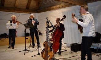 Mit tänzerischen Milongas, stimmungsvollen Valses, mit Gassenhauern der Straße bis zu Piazzollas anspruchsvollen Kompositionen begeisterten die klassisch ausgebildeten, aber musikalisch weltoffenen vier Musiker Martin Franke (Violine), Stefan Schwab (Klarinette), Georg Holzapfel (Gitarre), Herbert Engstler (Kontrabass) mit ihrem rhythmisch vollendeten Spiel das Publikum. Charmant und mit feinem Humor führte Georg Holzapfel durch das Programm. Er ging dabei auch auf die Geschichte des Tango ein, der Ende des 19. Jahrhunderts in den Armenvierteln von Buones Aires als Schmelztiegel europäischer Einwanderer, afrikanischer Rhythmen und lokaler Musik entstand. Wer sich bei der Tangomusik nicht auf seinem Stuhl halten kann, so Holzapfel, der kann jederzeit das Tanzbein schwingen. Auf jeden Fall gelang es den Musikern mit ihren mitreißenden Tangorhythmen das Publikum in Bewegung zu bringen. Nicht nur im Quartett, sondern auch solistisch gelang es den Künstler mit emotionaler Energie und Leidenschaft die typischen Merkmale der musikalischen Stilrichtung des Tango zu interpretieren.