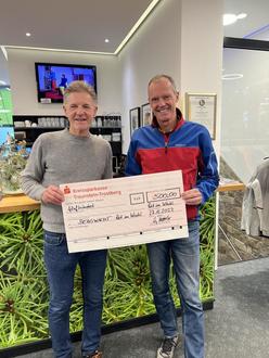 Eine Spende in Höhe von 500 Euro im Rahmen der traditionellen „Christmas Sales Week“ leistete die Firma Trattler aus Reit im Winkl an die Bergwachtbereitschaft Reit im Winkl. Dies sei ein Zeichen der Anerkennung der ehrenamtlichen Arbeit der Bergwachtler gerade auch im Tourismusort Reit im Winkl, sagte Gerhard Trattler (links) bei der Übergabe des Geldes mit symbolischem Scheck an Bergwacht-Bereitschaftsleiter Sepp Heigenhauser. Dieser bedankte sich und versicherte, dass die Spende sehr willkommen sei, insbesondere da im abgelaufenen Jahr hohe Kosten von über 20 000 Euro für die notwendige Generalüberholung der Bergrettungs-Raupe in Winklmoos entstanden seien. Die Raupe sei für den Rettungsbetrieb speziell auch bei schwierigen Notfällen und zum Abtransport mehrerer Patienten unabdingbar. (sh)