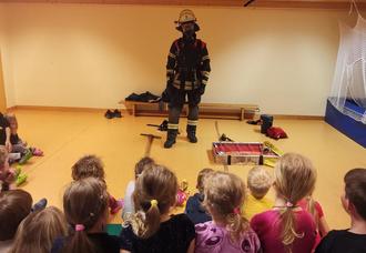 Im Rahmen der Brandschutzerziehung besuchte Stefan Huber von der Feuerwehr Reit im Winkl Kindergarten St. Pankratius. Dort wurde nach einer kurzen Vorstellung der Freiwilligen Feuerwehr die Schutzausrüstung erklärt. Er zeigte die „Verwandlung“ durch das Anlegen der Ausrüstung eines Atemschutzträgers mit allen Werkzeugen, welche er bei sich hat. Dies ist wichtig, damit die Kinder die Angst vor dem ungewohnten Anblick des ausgerüsteten Feuerwehrangehörigen verlieren und auch mit den zischenden Atemgeräuschen aus dem Pressluftatmer vertraut werden.