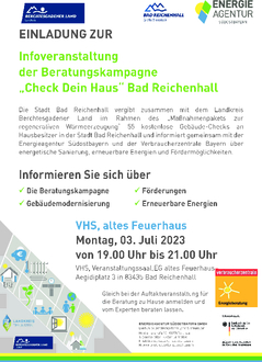 Der Landkreis Berchtesgadener Land unterstützt im Rahmen seiner Solar- und Sanierungsoffensive Berchtesgadener Land die Stadt Bad Reichenhall bei der Durchführung der Beratungskampagne „Check Dein Haus“.