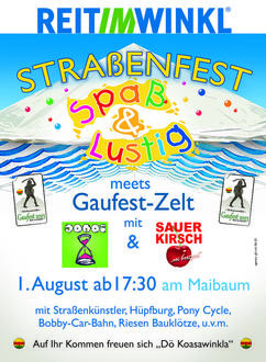 Als Zugabe zum Gaufest-Jahr findet am Dienstag den 1. August am Maibaum ab 17:30 Uhr mit den live Bands „Sauerkirsch“ und „JONOI“ das Familienfest „Gaufest meets Straßenfest“ statt. Viele „Mitmach-Attraktionen“ und der Zauberclown Fabellini sorgen für eine spannende Unterhaltung.