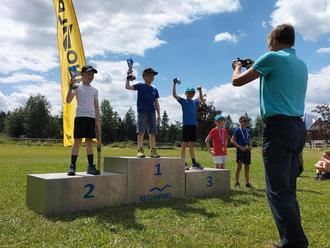 Jonas startete im gelben Trikot des Führenden in der Tournee. Das ist eine tolle Sache, macht aber nicht weniger Aufregung. Jonas meisterte die neue Situation ganz toll und kam dieses Mal auf den 3. Platz für den er mit einem sehr schönen roten Pokal belohnt wurde. Niklas schaffte es erneut in die Medaillenränge und wurde Sechster und Magnus konnte seinen 8. Platz vom Vortag wiederholen. Marinus musste dieses Mal anderen den Vortritt lassen und wurde Zwölfter in der am stärksten besetzten Altersklasse. Nach einer langen Unterbrechung für den Umbau der Videoweitenmessung ging es dann in der Mittagshitze auf der K27 weiter. Der Einsatz unserer Springer und der Service der Eltern und kleinen Springer war auf jeden Fall Weltklasse. Es wurden diesmal nicht nur die Ski, sondern auch die Schuhe, Helme und die Anzüge zum Ablauf getragen, so dass unsere Springer im Untergewand und den Schlappen hinaufgehen konnten um nicht zu verglühen. Ja es war ein schwieriges Springen. Franziska und Leopold waren sehr erschöpft, zeigten aber enorm viel Sportsgeist. Mit Platz 7 und 8 gingen beide etwas enttäuscht aus dem Wettbewerb. Zum Glück verstärkte Annika Buchner unser Team an diesem Wettkampftag. Annika war noch frisch und ihr gelangen sehr schöne Wettkampfsprünge. Mit ihrem technisch sauberen zweiten Versuch sprang Annika die Bestweite im zweiten Durchgang und kam auf den 2. Platz. Zu den prominenten Gratulanten für die Kinder kam dieses Mal noch Olympiasieger und Weltmeister Bernhard Gruber dazu. Weiter geht es mit der Internationalen Kindervierschanzentournee im Herbst an den beiden österreichischen Austragungsorten in Bischofshofen und in Hinzenbach.