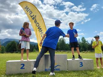 Bei traumhaften Bedingungen ging das Springen in Reit im Winkl dann über die Bühne. Erfreulicherweise traten in allen Altersklassen bei den Mädchen und Burschen viele talentierte Nachwuchsspringer an und die Wettbewerbe wurden sehr spannend. Zum ersten Mal durften Jonas Sachenbacher, Niklas Frohwieser und Magnus Mayer einen Wettkampf auf unserer K18 springen. Den Heimvorteil nutze Jonas gleich aus. Mit zwei wunderschönen Sprüngen auf den K-Punkt siegte er souverän. Auch Niklas kam auf einen der begehrten Top 6 Plätze. Obwohl es ihm am Schanzentisch diesmal sehr pressierte sprang er auf den 5. Platz. Nur insgesamt 2.5 m kürzer sprang Magnus bei seinen beiden Wertungssprüngen und kam auf einen tollen 8. Platz in der Klasse Kinder 8. Bei den Kindern 9 wollten 18 Burschen unbedingt unter die Top 6 kommen, auch Marinus Klauser. Ganz knapp ist ihm das dieses Mal noch nicht gelungen, aber es wurde ein mehr als respektabler 7. Platz. Bei den Mädchen hatte sich letztes Jahr schon angedeutet, dass es im Jahrgang 2013 in Österreich sehr viele unerschrockene Skispringerinnen gibt. Nun durften diese jungen Damen mit auf die große Schanze und zeigten ihr Können. Zwischen den ersten drei Mädchen entschieden bei gleicher Gesamtweite nur die Haltungsnoten. Franziska Frohwieser kam in dieser knappen Entscheidung auf den 3. Platz. Leopold Hinterberger traute sich erstmals einen Wettkampf auf unserer K30 zu und kam dabei auf Anhieb auf den 3. Platz. Zu den Erfolgen durften sich die Kinder bei der Siegerehrung vom japanischen Weltcupskispringer Naoki Nakamura und der Skisprung-Weltmeisterin und Olympiamedaillengewinnerin Daniela Iraschko-Stolz gratulieren lassen.