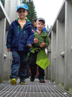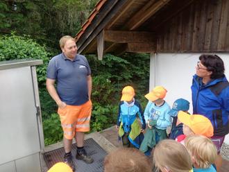 Morgens holen die Loferwichtel hier immer ihr Wasser für die Kanister, aber nun durften sie sich alles mal genauer anschauen. Matthias Lengg führte die Kinder durch alle Bereiche und erklärte kindgerecht die einzelnen Reinigungsschritte. Die Kinder konnten in die großen Becken und Kanäle hineinschauen und sehen, was so alles in dem Wasser drin ist, welches von zu Hause ins Klärwerk fließt. Alles wurde genauestens besichtigt und zum Schluss durfte natürlich auch der Lader nicht fehlen. Im Anschluss suchten dann alle Kinder gemeinsam das Abwasserrohr am Ufer, wo das gereinigte Wasser wieder in die Lofer zurückgeführt wird und hier blieb dann auch noch Zeit zum spielen.