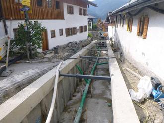 Anschließend erfolgt der Bau der Einlaufbauwerke. Parallel zu den Maßnahmen zum Hochwasserschutz erneuert die Gemeinde Reit im Winkl den Schmutzwasserkanal und die Wasserleitung.