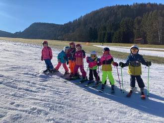 Die Skilehrer/-innen Magdalena, Christine, Eva, Niklas, Anthea, Maria und Manfred gaben ihr Bestes, um den Kindern bestmöglich erste und weiterführende Skikenntnisse zu vermitteln.