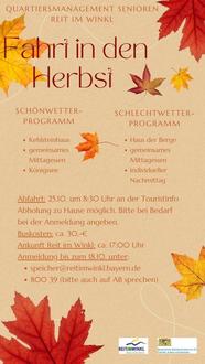 Am Mittwoch, den 25. Oktober laden wir Euch herzlich zu unserem Herbstausflug nach Berchtesgaden ein, der sowohl bei Sonnenschein als auch bei weniger freundlichem Wetter stattfinden wird. Der Tag beginnt um 8:30 Uhr an der Tourist Information, wo wir uns alle treffen werden. Von dort brechen wir zu unserem Tagesausflug auf.