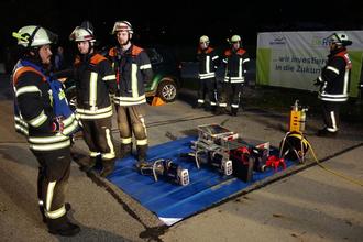 „Verkehrsunfall mit eingeklemmter Person“, so begann Gruppenführer Andreas Windbichler seine knapp gefassten Anweisungen an die Kameraden. Innerhalb der vorgeschriebenen Sollzeit nahm daraufhin die Mannschaft den kompletten Aufbau aller Gerätschaften vor, um die Person aus dem verunfallten Fahrzeug zu befreien. Die vollständige Verkehrsabsicherung sowie alle für eine Unfallrettung notwendigen Geräte wie Rettungsschere und Spreizer wurden bereitgestellt. Parallel dazu wurden die „verletzte“ Person ständig betreut und erstversorgt sowie der Brandschutz an der Unfallstelle sichergestellt.