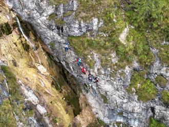 Gemeinsam übten die Reit im Winkler und die Kössener Bergretter am Hausbachfall-Klettersteig.