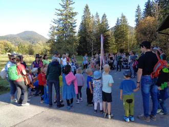 Mit einem Lied begrüßten die Kinder ihre Gäste und dann ging es auch schon los mit einer kleinen Wanderung.