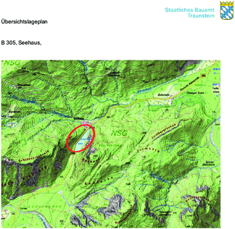Oberhalb der Bundesstraße 305 zwischen Chiemgau Arena und Seegatterl, werden im Bereich Seehaus am 06.11.2023 in Zusammenarbeit mit den Bayerischen Staatsforsten dringliche Forst- und Instandhaltungsarbeiten an den Lawinen- und Steinschlagschutzverbauungen durchgeführt. Wegen der schwierigen Arbeiten im Steilgelände ist der Einsatz eines Hubschraubers zwingend erforderlich. Aus Sicherheitsgründen für den Verkehr muss die Bundesstraße während der Arbeiten halbseitig und während der Flugzeiten vollumfänglich gesperrt werden.