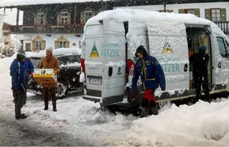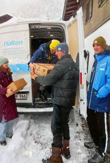 Die Schreinerei Marcus Ritzer und die Firma Halton, beide Firmen in Reit im Winkl ansässig, hatten ihre Fahrzeuge zur Verfügung gestellt, mit denen Walter Petersen und Wolfgang Neumaier als Fahrer die Hilfsgüter schließlich gut und sicher zur Sammelstelle nach Obing brachten. Das erforderte diesmal etwas mehr Geduld und fahrerisches Können als an schneefreien Tagen.