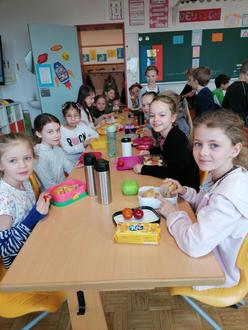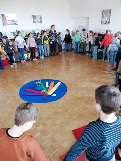 Ein grundlegendes Wesensmerkmal von Festen und Feiern ist es, Gemeinschaft erleben und zelebrieren zu können. Gerade an unserer Grundschule ist uns dieses Miteinander ein hohes Gut, weswegen bedeutende Feste gerne für gemeinsame Feiern genutzt werden. Ostern beispielsweise. Den letzten Schultag vor den Ferien verbrachten die Kinder also weitestgehend miteinander und dies mit einem abwechslungsreichen Programm. Dies begann mit einer dreiviertelstündigen Andacht in der Schulbücherei: Dabei wurde von den Kindern eine Geschichte vorgelesen, es wurden Fürbitten vorgetragen und miteinander auch Lieder gesungen. Angelika Hipper hatte diese ausgewogene und harmonische Andacht gestaltet. Anschließend pilgerten die Mädchen und Buben in das Zimmer der 3. und 4. Klasse, um dort gemeinsam zu frühstücken. Jede und jeder hatte dazu etwas Passendes mitgebracht. Nach einer kleineren Lerneinheit gab es noch einen Film zu bestaunen, wobei den Kindern Hintergründe zu verschiedenen Osterbräuchen nahegebracht wurden. Die Kinder hatte ihre sichtbare Freude an diesem letzten Unterrichtsvormittag vor den Osterferien, auch weil ihn alle vier Klassen miteinander erleben konnten.