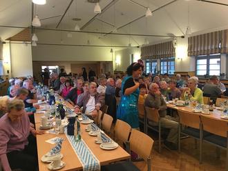 Nach 3-jähriger Pause fand im großen Saal im „Löwenhof“ wieder das „Oktoberfest der Senioren“ statt. Der persönlichen Einladung der Gemeinde folgten ca. 120 „Ü70-ger“, die von Bgm. Klein mit einem launigen Gedicht und Weinprinzessin Anna I. mit ganz persönlichen Einblicken in ihr Amt begrüßt wurden. Dank der Unterstützung der Verantwortlichen der Seniorenkreise und der Seniorenreferenten Martina Neuweg, Monika Troll und dem Team des Löwenhofs genossen alle die festliche Atmosphäre bei Kaffee & Kuchen, guten Gesprächen und bester Unterhaltung. Einer der Höhepunkte war sicherlich der Auftritt von „Franken’s närrischter Putzfraa“ Ines Procter, die es schaffte, humorvoll, tiefgründig, spaßig und kurzweilig die Gäste zu unterhalten. Freud und Leid, pubertierende Kinder, unter jedem Dach ein Ach und vieles Alltägliche brachte manchen zum Lachen, Schmuntzeln und Nachdenken. Natürlich gab es als Dankeschön neben der Gage auch ein Geschenk für die Frau, die aus Fastnacht in Franken bekannt ist. Bgm. Klein freute sich, dass es wieder solche Veranstaltungen gibt, bei denen man sich zwanglos trifft. Er berichtete über verschiedene Gespräche mit den Verantwortlichen für Senioren und Behinderte und die dabei angesprochenen Themen. Der 7,50-EUR-Gutschein für das Weinfest kommt genau so gut an, wie der 7,50 EUR-Gutschein zum Verzehr beim „Oktoberfest“. Barrierefreiheit, Straßenbeleuchtung und der Erhalt des Dorfladens sind für ältere Menschen vor Ort besonders wichtig. Auch die Ergebnisse der umfassenden Befragung der Senior/inn/en aus 2022 wurden angerissen. Bgm. Klein empfahl, das gemeinsame Mittagessen „Gemeinsam statt einsam“ im Löwenhof einmal im Monat oder den lockeren Treff jeden 3. Freitag im Monat im Schloss Crailsheim/Vinfothek zu besuchen und natürlich die Seniorenkreis der Kirchengemeinden. Es sei wichtig, sich zu treffen und sich auszutauschen, betonte er verbunden mit dem Dank an alle, die Seniorenarbeit leisten. Für alle, die nicht mehr mitfeiern konnten, wurde eine Kerze angezündet und so u. a. an Altbgm. und Ehrenbürger Friedrich Amberger und alle anderen gedacht, die sonst so selbstverständlich dazu gehörten. Zum Ende servierte das Team Löwenhof die seniorengerechten Brotzeiten bzw. Abendessen und so klang ein schöner Nachmittag gemütlich mit dem einen und anderen Schoppen Wein, Bier oder Wasser aus. Das Oktoberfest der Senioren in Rödelsee war ein voller Erfolg und bot den Gästen eine willkommene Abwechslung und Unterhaltung. Die Gemeinde Rödelsee freut sich bereits auf weitere Veranstaltungen dieser Art, um das Gemeinschaftsgefühl und die Freude am Feiern und Zusammenkommen weiter zu stärken.
