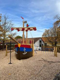 Am 03.11. war es endlich soweit: das Aktivschiff der Stiftung Kinderförderung Playmobil konnte nach der erfolgreichen TÜV-Abnahme an die Krokodile, Löwen, Mäuse und Waldräuber übergeben werden. Taufpatin & Weinprinzessin Anna I. taufte das Piratenschiff auf den Namen „Seewolf“, den die Kita-Kinder ausgesucht hatten. Bgm. Klein als „Captain Sparrow“ bedankte sich besonders beim Vorstand Florian Löffler für die großzügige Spende und die gute Zusammenarbeit mit den Baufirmen, Planungsbüros und dem Bauhof. Die Idee sich zu bewerben kam im Jahr 2018 im Elternbeirat auf, Bgm Klein stellte im Juni 2020 offiziell die Bewerbung. Nach einigem hin und her und auch Dank der Hartnäckigkeit der Gemeinde und der tollen Unterstützung durch Elternbeirat, Förderverein und das Kita-Team um Frau Schneider, kam es schließlich 2022 zu intensiven Verhandlungen und im Frühjahr 2023 zur Zusage. Florian Löffler stellte die Intention der Stiftung vor und gab im Anschluss an die Taufe durch Anna I. das Kommando „Leinen los“; da gab es dann kein Halten mehr für die Kita-Kinder. Die Organisation der schönen Feier erfolgte durch Gabi Vasicek und Alexandra Grubert (Team Vinfothek/Gemeinde) und den Bauhof. Und am Ende durften sich die Kinder natürlich noch aus der Schatztruhe etwas herausholen und den schönen Tag genießen.