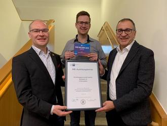 Die Urkunde wurde dem Ausbildungsbetrieb durch Herrn Stefan Göbel (Bereichsleiter Berufsausbildung und Fortbildungsprüfungen der IHK Würzburg-Schweinfurt) überreicht.