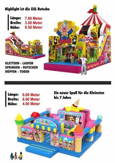Für Bewegung ist gesorgt, schließlich haben wir insgesamt 3 besondere Angebote. Die Kleinsten dürfen sich in der Eisdiele / Candy-Eis-Park (Die aufblasbare Eisdiele für bis 7 Jahren) und die größeren Kinder im Minions-Abenteuerpark XXL vergnügen. Für die ganz Großen und Erwachsenen steht das lustige Eventmodul Teufelsbalken-Eliminator zur Verfügung.