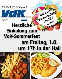 Der VdK Ortsverein Rödelsee lädt alle Mitglieder, Freunde, Interessierte und Nichtmitglieder herzlich zum seinem Sommerfest ein!