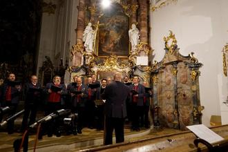 Am zweiten Advent fand das traditionelle „Roggenburger Adventsingen“ des Männergesangvereins Roggenburg in der Klosterkirche statt. Gemeinsam mit dem Kirchenchor Biberach-Asch und der Stubenmusik Fischer wurde ein vielseitiges adventliches Programm gestaltet. Ein junges Orgeltalent – Hendrik Haider – rundete den Nachmittag ab. Die Besucherinnen und Besucher erlebten bei freiem Eintritt in der vollbesetzten Klosterkirche sowohl traditionelles als auch neues Liedgut, alpenländische Werke und klassische Kompositionen. Den Ertrag aus dem Spendenkörbchen – 250 € - haben nun Dirigent Johann Blum und Vorstand Hubert Vogel an Bürgermeister Mathias Stölzle für die Aktion Roggenburg hilft übergeben. Im Namen des Kuratoriums dankt Bürgermeister Stölzle für die großzügige Zuwendung, die in vollem Umfang Mitbürgerinnen und Mitbürgern aus der Gemeinde Roggenburg zu Gute kommen wird.
