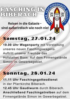 Nach dem Faschingsgottesdienst ca. 12.30 findet die Aufstellung zum Gaudiwurm im Kirchengraben/an der Dorflinde statt. Jeder Maskierte darf am Gaudiwurm teilnehmen. Es sind nur Fußgruppen erlaubt und keine Tiere, Musikanlagen, Lautsprecher oder Megafone. Angeführt wird der Zug vom Hägar Faschingswagen und unserem Kindergarten St. Sebastian aus Biberach. Musikalisch Begleitet wird der Zug von den Giggalesbronzer und Los Locos aus Weißenhorn. Der Gaudiwurm setzt sich ab 12.45 Uhr in Bewegung. Er läuft die Weißenhornerstraße in Fahrtrichtung Weißenhorn und endet im Gewerbegebiet wo im Anschluss auf dem Firmengelände der Firma Simon das Faschingstreiben stattfindet. Wir hoffen auch auf zahlreiche Zuschauer an der Zugstrecke. Für die Anwohner der Weißenhornerstraße/An der Biber/Ascherstraße und Weiherstraße mit Msgr.-Hornung-Weg und Dirrfelderstraße bitte wir um Verständnis, dass es in der Zeit von 12.30 Uhr bis 13.30 Uhr zu kurzzeitiger Sperrung und Verkehrsbehinderung kommen kann. Aufgrund der Veranstaltung ist die Straße "Am Priel" von Samstag, 27.01. 8.00 Uhr bis Sonntag, 28.01.24 22.00 Uhr voll gesperrt.