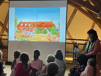 Mit dem Kindermutmachlied wurde die Kinderbuchausstellung am 16.11.2025 in Roggenburg laut und mit viel Energie aus den Kehlen der Roggenburger Zweitklässler eröffnet. Das diesjährige Motto lautete „Abenteuer für mutige Helden“ - und das passte dann auch wirklich perfekt zur gesamten Veranstaltung: Schon bei der allgemeinen Begrüßung der Gäste in der Darre zog das Kinderbuch, das den Kindern und Erwachsenen in Form eines Bilderbuchkinos vorgelesen wurde, alle in den Bann.