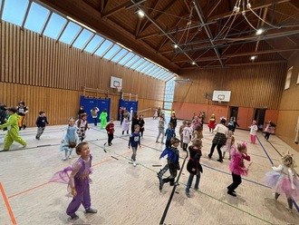 Nachdem in den Klassenzimmern verschiedene Aktivitäten und Spiele stattgefunden hatten, traf sich die gesamte Schulfamilie zum närrischen Höhepunkt in der Turnhalle. Dort wurde ausgelassen getanzt und gefeiert und eine fast endlos lange Polonaise gemacht, bevor alle in die wohlverdienten Winterferien starten durften.