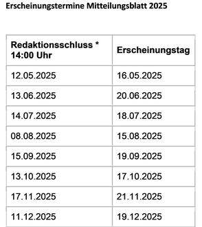 Zur Veröffentlichung Ihrer Beiträge benötigen wir Ihren druckfähigen Artikel möglichst als Word-Datei-Fließtext sowie Bilder (unbeschnitten) und Logos separat als Anhang. Bitte senden Sie Ihre Beiträge an die Mail-Adresse mitteilungsblatt@roggenburg.de