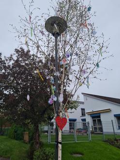 Die Kinder und der Elternbeirat der KiTa St. Sebastian hatten eine tolle Überraschung für das pädagogische Personal vorbereitet. Als Dank für die vielen schönen Stunden in Krippe und Kindertagesstätte und die tollen Aktionen im Jahreskreis wurde ein wunderbar geschmückter Maibaum aufgestellt. Dazu durften die Kinder zu Hause ihre Handabdrücke gestalten, mit dem der Baum geschmückt wurde. Im Anschluss gab es ein kurzes Programm mit Liedern und kleiner Tanzeinlage der Kinder und für alle Anwesenden ein leckeres Weißwurst-Frühstück.
