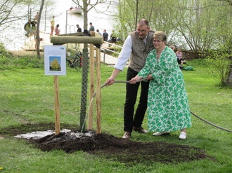 Auf der Liegewiese am Roggenburger Weiher wurde anlässlich des 60. Geburtstages von Bürgermeister Mathias Stölzle ein Ginkgobaum gepflanzt. Der Baum, der ein Geschenk der Gemeinde Roggenburg war, solle, so der Wunsch des Bürgermeisters, die Bürgerschaft und die Benutzer der Liegewiese erfreuen. Der zweite Bürgermeister Johannes Schmid gratulierte Mathias Stölzle im Namen des Gemeinderats, der Verwaltung und der Gemeinde und erläuterte die sinnbildliche Bedeutung und warum die Wahl auf einen Ginkgobaum fiel. So symbolisiere dieser u.a. Anpassungsfähigkeit, Freundschaft, Liebe und Stärke - Eigenschaften, so Schmid, die auch auf den 1.Bürgermeister Mathais Stölzle zutreffen. Die anwesenden Gemeinderäte griffen dann zur Schaufel und pflanzten den Ginkgobaum ein, den Bürgermeister Stölzle und seine Frau Regine anschließend kräftig wässerten. 3. Bürgermeister Joachim Graf überraschte noch musikalisch mit einem Geburtstagsständchen der Blaskapellen Biberach, Schießen und Meßhofen. Bürgermeister Mathias Stölzle war sichtlich gerührt und bedankte sich bei allen Anwesenden.
