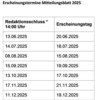 Zur Veröffentlichung Ihrer Beiträge benötigen wir Ihren druckfähigen Artikel möglichst als Word-Datei-Fließtext sowie Bilder (unbeschnitten) und Logos separat als Anhang. Bitte senden Sie Ihre Beiträge an die Mail-Adresse mitteilungsblatt@roggenburg.de