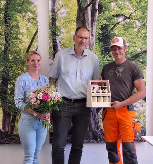 Die Gemeinde Roggenburg hat Verstärkung bekommen: In der Gemeindeverwaltung unterstützt nun Frau Bettina Nold an drei Vormittagen im Bauamt, im Bauhof wurde Herr Alexander Junginger eingestellt – er arbeitet an 4 Tagen. Bürgermeister Mathias Stölzle heißt die beiden ganz herzlich im Team der gemeindlichen Beschäftigten willkommen und begrüßt sie mit einer kleinen Aufmerksamkeit.
