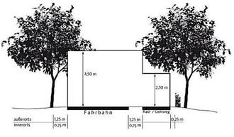 An öffentlichen Verkehrsflächen müssen sog. Lichtraumprofile eingehalten werden: Das bedeutet, dass an Gehwegen eine lichte Höhe von 2,50 m, entlang einer Straße eine Höhe von 4,50 m von Bepflanzung freizuhalten ist. Überhängende Äste und Zweige sind bis auf die Grundstücksgrenze zurückzuschneiden.
