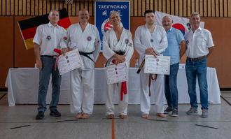 Bader und Baur leiten seit vielen Jahren die Taekwon-Do-Schule im Ortsteil Schleebuch, die jedes Jahr im Sommer eine Veranstaltung mit Schwarzgurt-Prüfungen abhält und im Mai eine beeindruckende Vorführung auf dem Dorffest in Schießen dargeboten hat. Interessenten aller Altersklassen, egal ob Sportler oder Nicht-Sportler, heißen wir gerne zu einem kostenlosten Probetraining willkommen – auch die drei neuen Danträger haben einmal bei Null angefangen!
