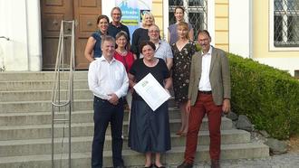 von links: Matthias Rausch Klimaschutzmanager Landratsam Neu-Ulm, Steuerungsgruppe Roggenburg: Dörte Fischer Bildungszentrum (Sprecherin Steuerungsgruppe), 1. Bürgermeister Mathias Stölzle, Edith Lamprecht, Christian Prinz, Frau Stephanie Belz (Rektorin GS Roggenburg), Elisabeth Kenzle, Stephan Einfalt, Martina Gröger, Silvia Götzl, es fehlen Elija Schmid und Lina Fischer von der KLJB Roggenburg. Foto: Gemeinde Roggenburg
