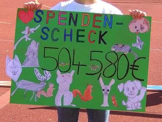 Nach der Begrüßung durch unsere Rektorin Frau Stephanie Belz wurde Frau Ilona Gutter von der Wildtierhilfe Roggenburg symbolisch ein Spendenscheck im Wert von über 5000 € übergeben. Diese überragende Summe kam beim Sponsorenlauf im Mai zusammen, bei dem die Kinder für das Wohlergehen der Tiere ihre ganze Energie aufgebracht haben.