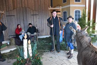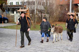 Während die Kinder die Krippe bestaunen und das Jugendorchester stimmungsvoll für das Jesuskind spielt, kommen die Samer mit ihren Kraxen auf dem Rücken und dem Esel Lotta auf den Dorfplatz. Ihr Weg führte über den Klobenstein, den Kroatensteig, an der Ache entlang ebenfalls bis zur Krippe.