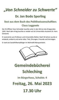 Um 17.30 Uhr findet die Lesung mit Dr. Jan Bodo Sperling statt, wozu wir herzlich alle Interessierten einladen.
