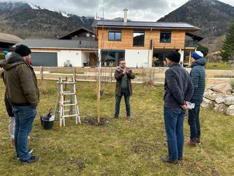 Das Ökomodell begleitet das Projekt und freut sich, mit Markus Breier, Kreisfachberater für Gartenkultur und Landespflege vom Landratsamt Traunstein, einen fachkundigen und engagierten Experten an der Seite zu haben. Er berät die Interessenten in der Standortfrage und Auswahl des richtigen Baumes und begleitet die Pflanzaktion. Im Frühjahr diesen Jahres hat er sein Fachwissen bei einem Baumschneidekurs an die Teilnehmer weitergegeben.