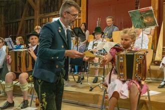 Acht Jahre jung, aber schon von Bürgermeister Stefan Kattari mit dem Grassauer Haberspitz ausgezeichnet. Den bekam Leni Maier aus Staudach für Ihre auf der Ziach überzeugend gespielten Stücke „Dätscher“ und „Beim Bimperlwirt, beim Bamperlwirt“.