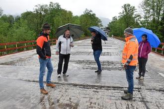 Schleching – Bürgermeister Josef Loferer hatte die Gemeinderäte zu einem Ortstermin eingeladen. Zu einer Information über den Sachstand der Sanierung der Raitner Brücke. Die Brücke führt über die Ache und verbindet die Orte Raiten und Unterwössen. Von der Bauleitung der Firma Haumann & Fuchs Ingenieure AG aus Traunstein stand Hans Stelzer zur Verfügung, um über den aktuellen Stand zu informieren.