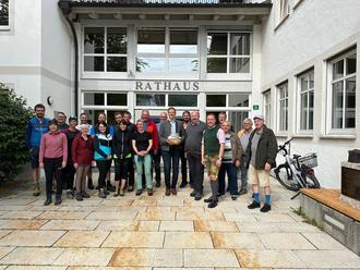 Nach einem ausgiebigen Frühstück im Cafe Pauli wurde die Gemeinde Schleching ganz herzlich am Rathaus von Bürgermeister Simon Frank und Tourismusleiter Herbert Reiter mit einem Sektempfang begrüßt.