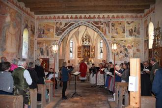 Musikalisch begleitet wurden die Besucher von dem Komponisten Wolfgang Amadeus Mozart mit der Messe Missa Brevis in C-Dur. Der beeindruckende Gesang wurde vom Kirchenchor und vier Solisten dargeboten, sowie eine Orchester Besetzung mit erster und zweiter Violine, Cello, Spinett, Orgel und Querflöte. Die Leitung hatten Andreas Rieth und Maria Blank, die auch das Spinett und die Barock- Orgel spielte. Nicht nur die Besucher waren begeistert, auch die vielen Heiligen an den Wänden wird diese besondere Messe gefreut haben. Pfarrer Martin Straßer fand, dass es einen großen Applaus wert ist, dieser Ansicht folgten die Kirchenbesucher gern. Er bedauerte, dass es nicht wie über viele Jahrzehnte nach dem Gottesdienst zur Einkehr in den Berggasthof der Wirtsfamilie Strohmeyer ging. Ein besonderes Gedenken während der Messe ging an den verstorbenen Streichenwirt Franz Strohmayer und Gretl Strohmayer, sowie Alois Glück.