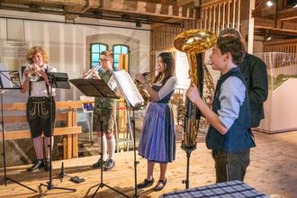 Vitus Detsch beeindruckte mit seiner diatonischen Harmonika bei „Fürn Christoph“ von Johanna Dumfart und „Beautiful Seeres“ von Herbert Pixner. Die Bläserformation „Easy Brass“ zeigte mit „Blasmusik in Moll“ von Hans-Jürgen Buchner und der „Grassauer Weis - Auf da Hefteralm“ von Kröll und Kamml die Vielfalt und die Tiefe der Grassauer Blasmusiktradition. Moderator Otto Dufter zitierte zu dieser Formation den Musikschulleiter Wolfgang Diem. „Easy Brass ist unser Aushängeschild.“