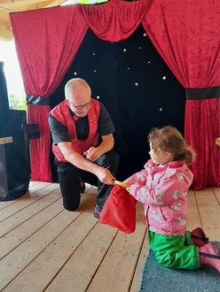 Eine Familie des Waldkindergartens Schleching ermöglichte den „Mankeikindern in der Au“ durch eine Spende, den unvergesslichen Auftritt eines Zauberers. Mit Spannung und Faszination verfolgten die Waldkinder die zauberhaften Kunststücke des fantastischen Zauberers Christian Erbersdobler aus Bad Birnbach. Mit unvorstellbarem künstlerischem Geschick und Einfühlungsvermögen verstand der Zauberer, alle Kinder in seine Zauberkräfte miteinzubeziehen und gemeinsam in die geheimnisvolle Welt der Magie einzutauchen. Die kleinen Zauberer waren mit Feuereifer und Freude bei der Sache und durften eine zauberhafte Vorstellung erleben.