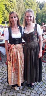 Es gab typische bayerische Spezialitäten, ein Salat- und Kuchenbuffet der Familien und Einlagen wie zwei Zither-Stücke von Johanna Pertl und einen von Matthias Ramoser betreuten Mass-Krug-Stemm-Wettbewerb, den die Franzosen knapp gewannen. Einen Höhepunkt bildete der Auftritt einer Abordnung des Trachtenvereins Marquartstein-Piesenhausen mit ihrem Jugendleiter Thomas Mayer und ihren bekannten Dirndln und zwei jungen Schuahplattlern aus Grassau. Eine Ehre, dass ihr Eich Zeit g‘nomma hobt’s. Merci!